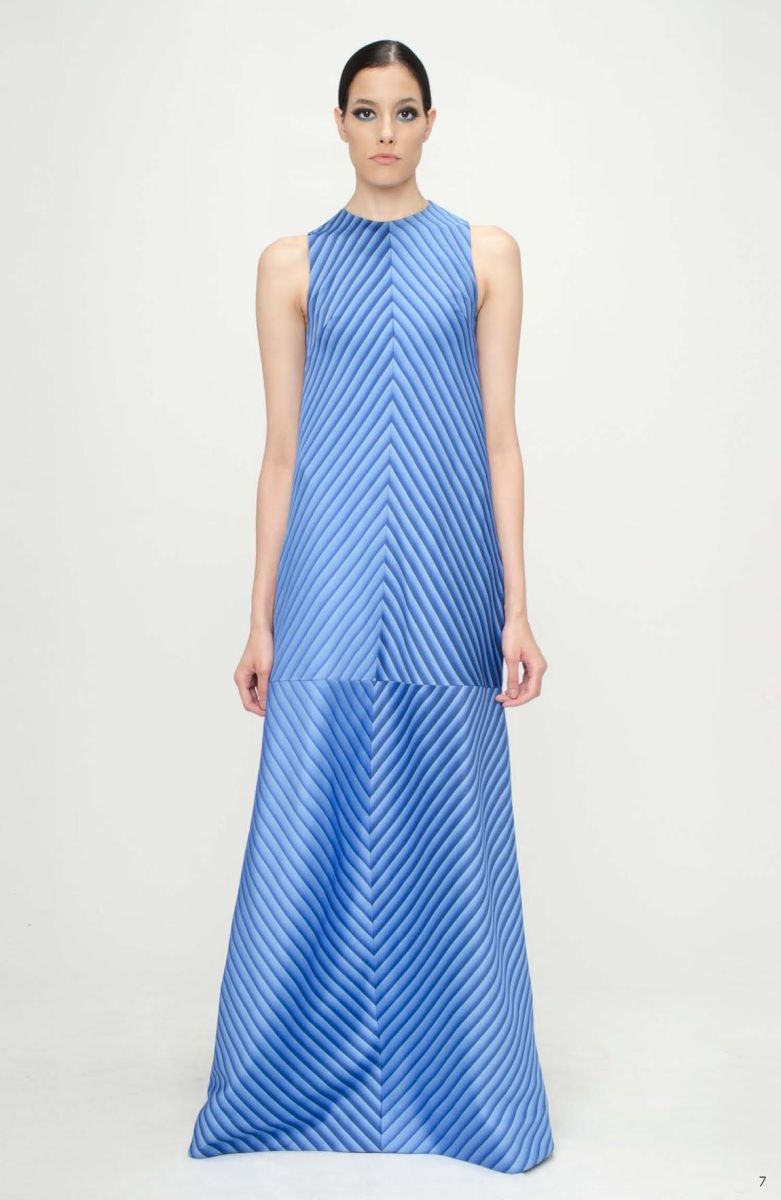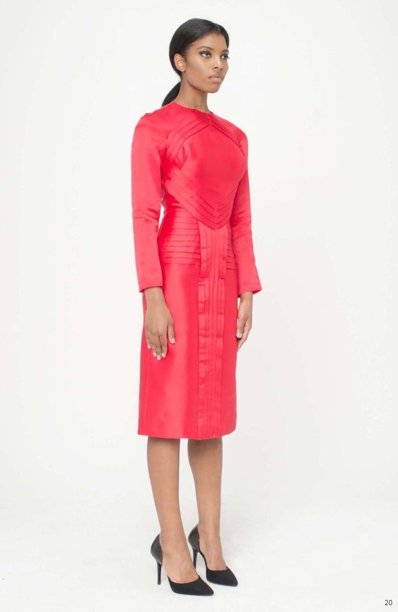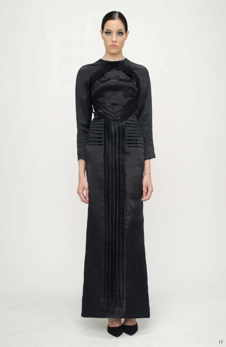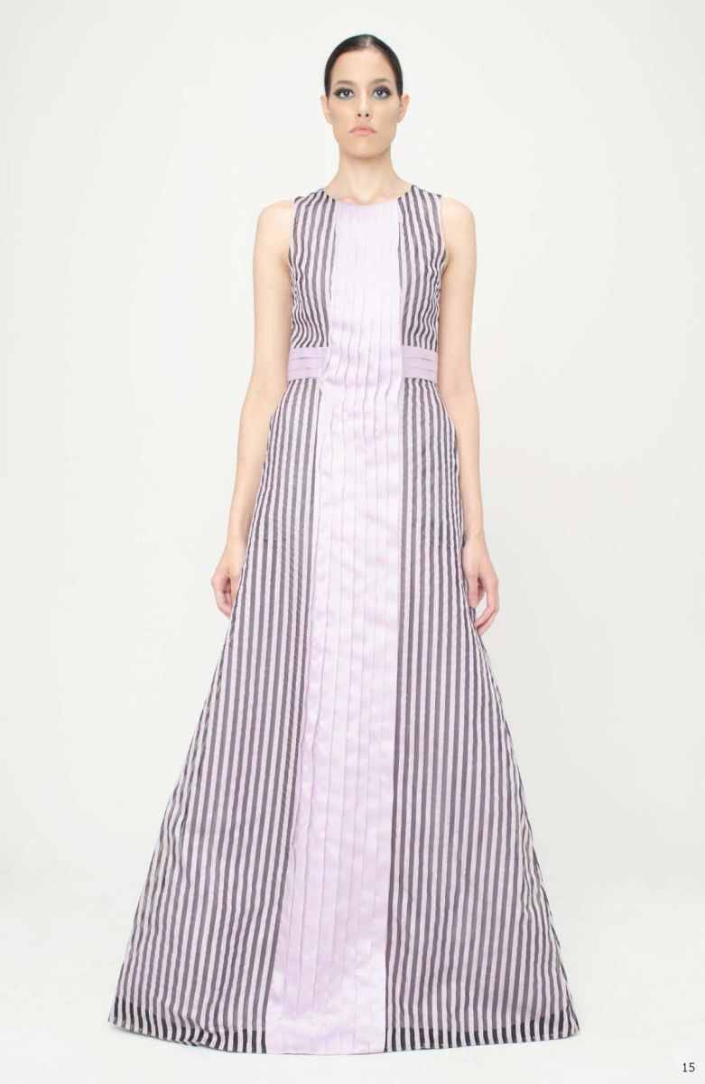 Inspired by the Nebuta House Museum in Japan, the Spring/Summer 2015 collection imitates the building which is made out of 820 twisted steel strips. These strips inspired the idea of pleating the fabric as contouring to enhance the female form. In his younger years, Washington had the notion to become an architect, and for this project, he combined his love for architecture with his passion for fashion to birth this structured collection.