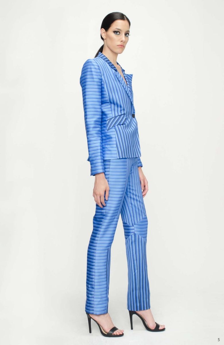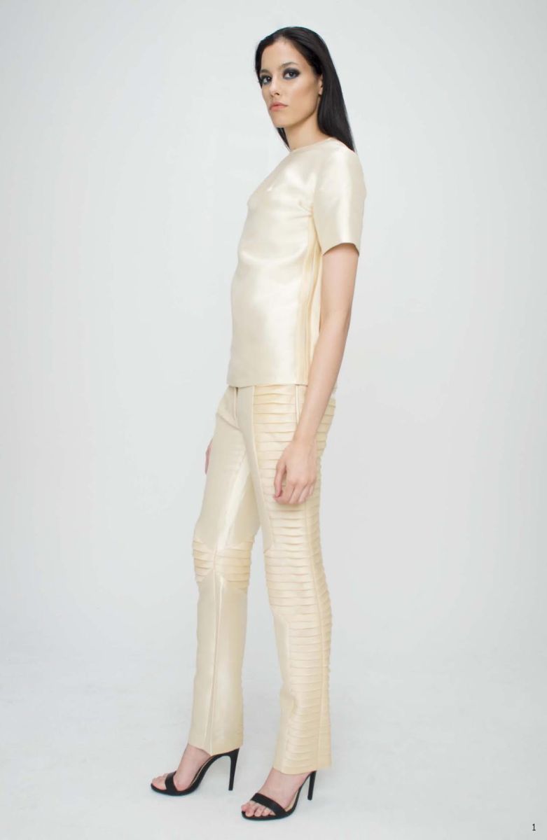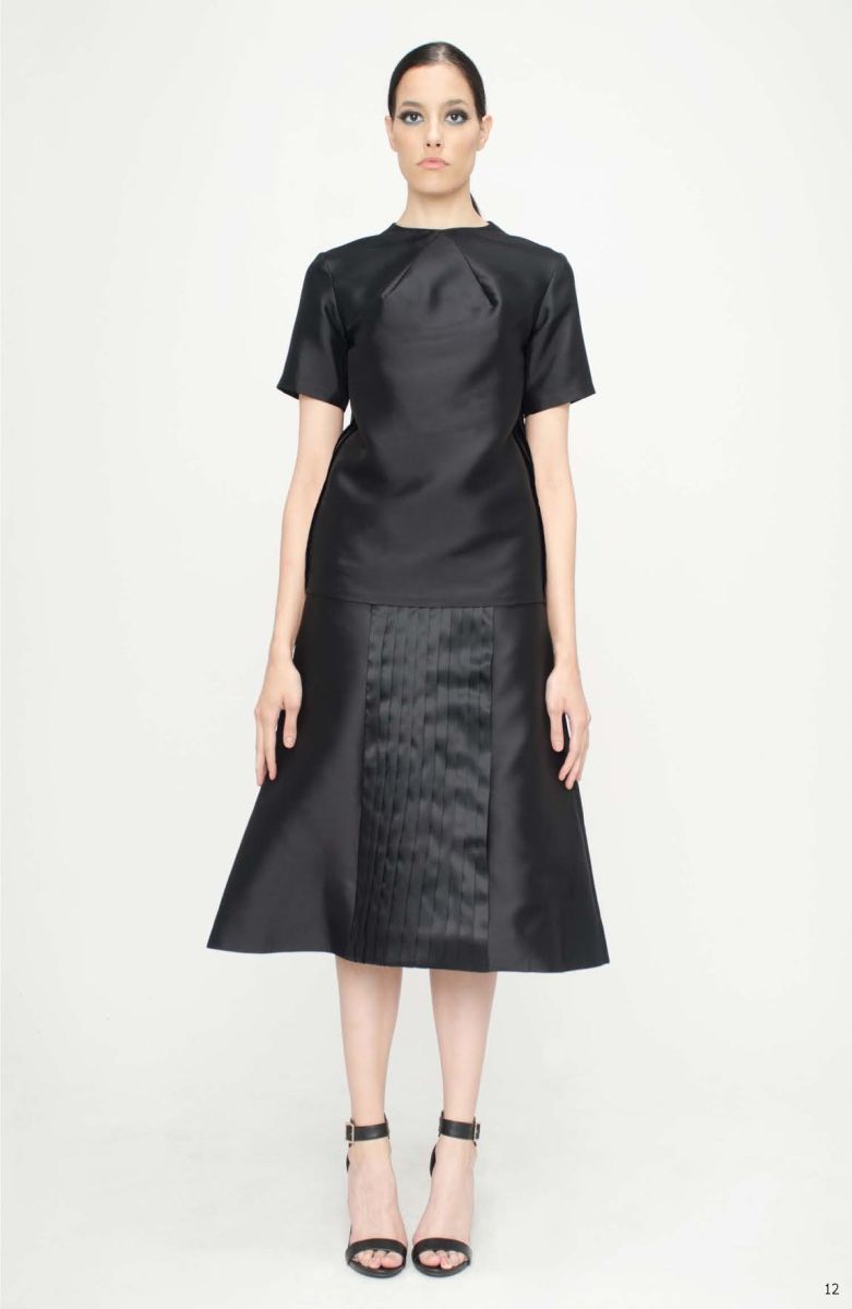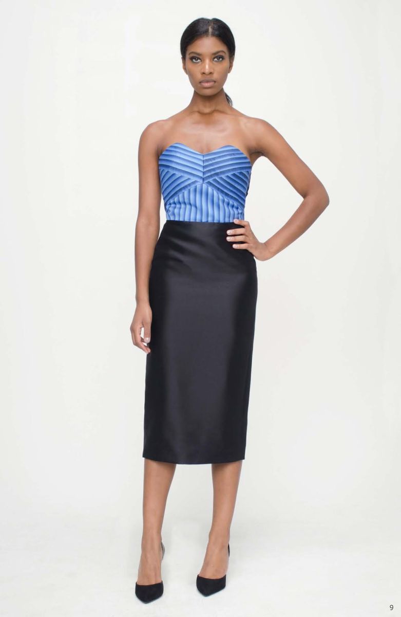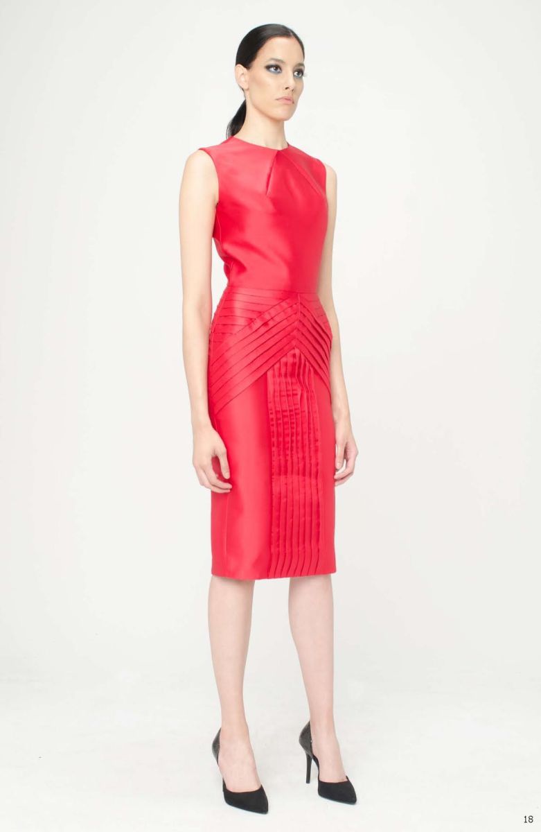 Inspired by the Nebuta House Museum in Japan, the Spring/Summer 2015 collection imitates the building which is made out of 820 twisted steel strips. These strips inspired the idea of pleating the fabric as contouring to enhance the female form. In his younger years, Washington had the notion to become an architect, and for this project, he combined his love for architecture with his passion for fashion to birth this structured collection.