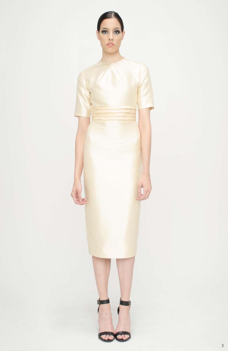 Fabrics used range from silk wool and satin face silk to organza and Italian woven lurex and organza stripe.